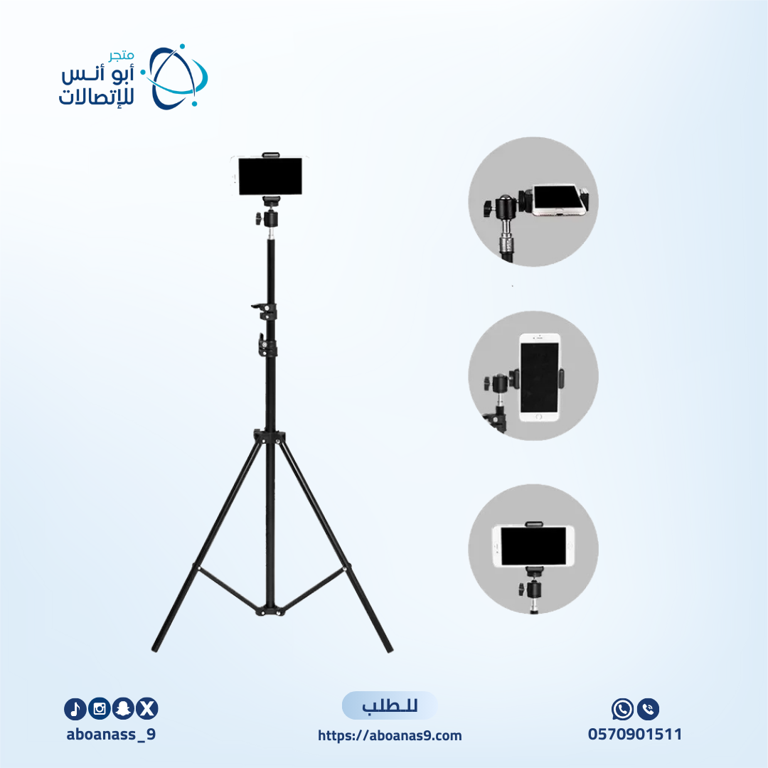 حامل ثلاثي القوائم لهاتفك المحمول هو الخيار المثالي لتثبيت الهاتف أثناء التصوير أو التسجيل. يتميز هذا الحامل بتصميم قوي وقابل للتعديل مع دعم مباشر للصور والفيديو، مما يجعله مثاليًا للمصورين أو صانعي المحتوى. يأتي الحامل بارتفاع يصل إلى 63 بوصة، مما يوفر لك زاوية رؤية مرنة لالتقاط الصور الشخصية (سيلفي) أو تصوير الفيديو. كما أنه مناسب تمامًا لهاتف آيفون 15 برو ماكس وأجهزة الهواتف الأخرى بفضل قدرته على التكيف مع أحجام الهواتف المختلفة. يعد الحامل مثاليًا أيضًا للتصوير في الهواء الطلق أو داخل الاستوديو.